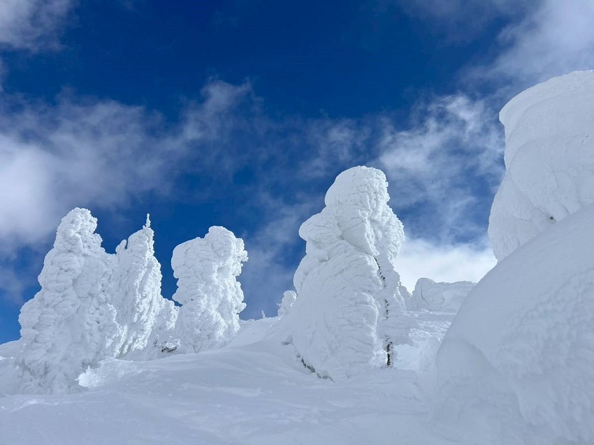 樹氷原と呼ばれる樹氷群の中を歩きながら写真を撮ったり楽しみます。