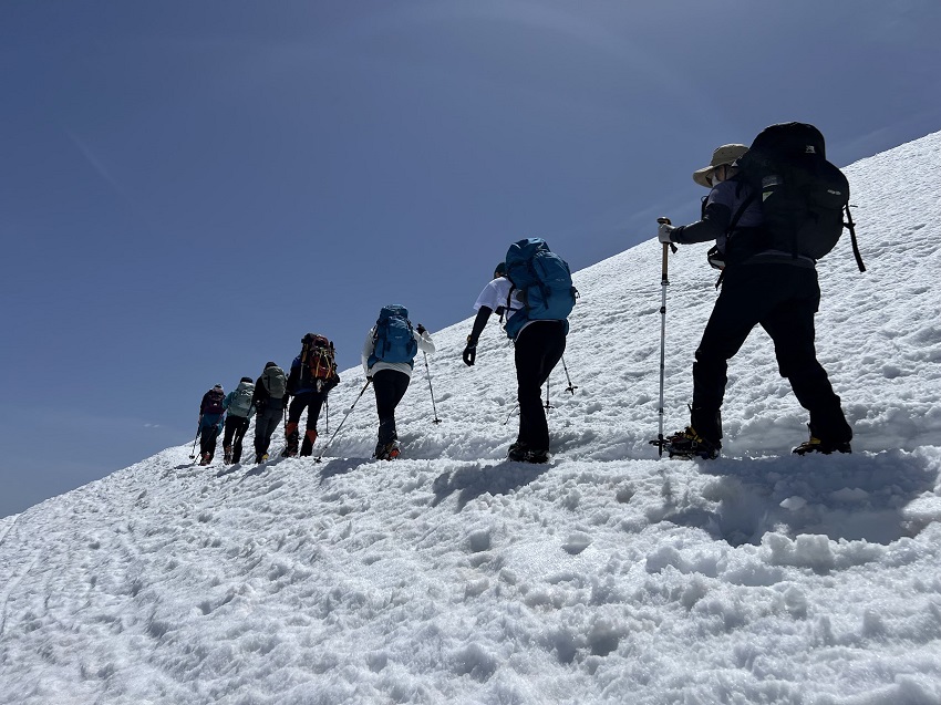 初日はアイゼン歩行の練習をしてから登山開始するので、雪山登山を目指している方のトレーニングにも最適!