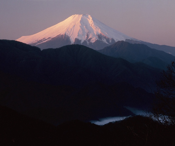 大きく裾野を広げた富士山を正面に、周囲には御正体山や道志山塊、さらには南アルプスの稜線まで見渡せます。