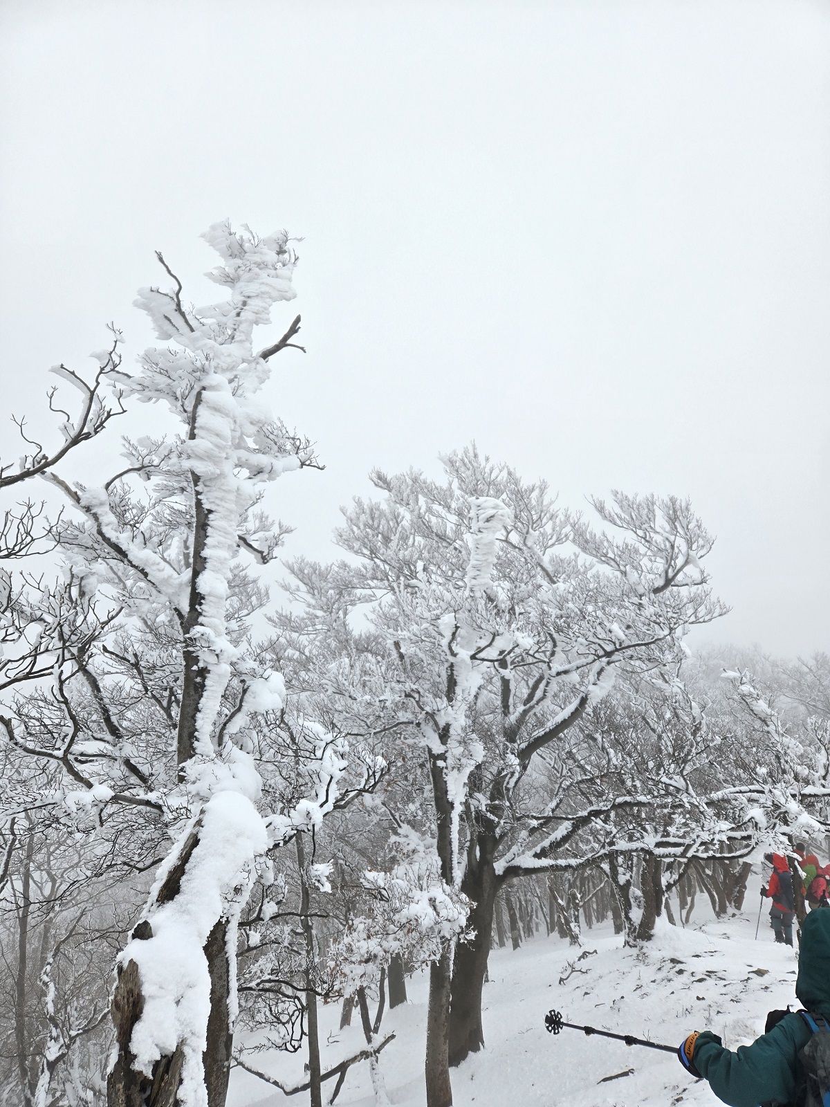 条件が整えば「エビの尻尾」と呼ばれる繊細で迫力ある氷の造形や、枝に覆いかぶさるように広がる霧氷のトンネルを体験でき、感動間違いなしです。