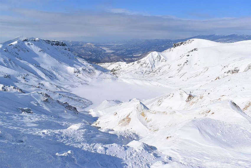 荒々しい沼平の噴火口も真っ白!