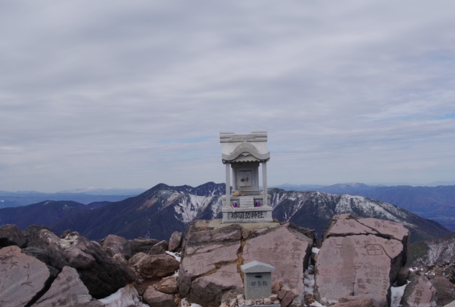 茶臼岳山頂から見た峰の茶屋と朝日岳