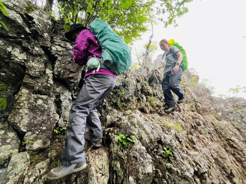 ・急登やトラバース道、岩場、鎖場等で同行ガイドから歩くコツを学びます。