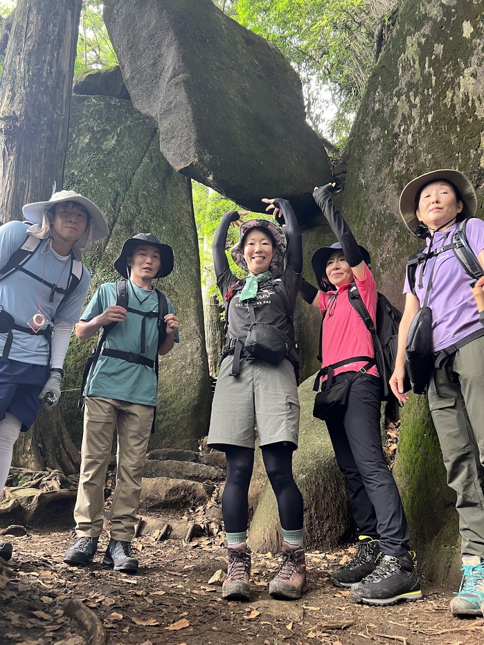 ・急な階段やトラバース道、岩場など多様な登山道を歩きます。ガイドから歩くコツを学びます。