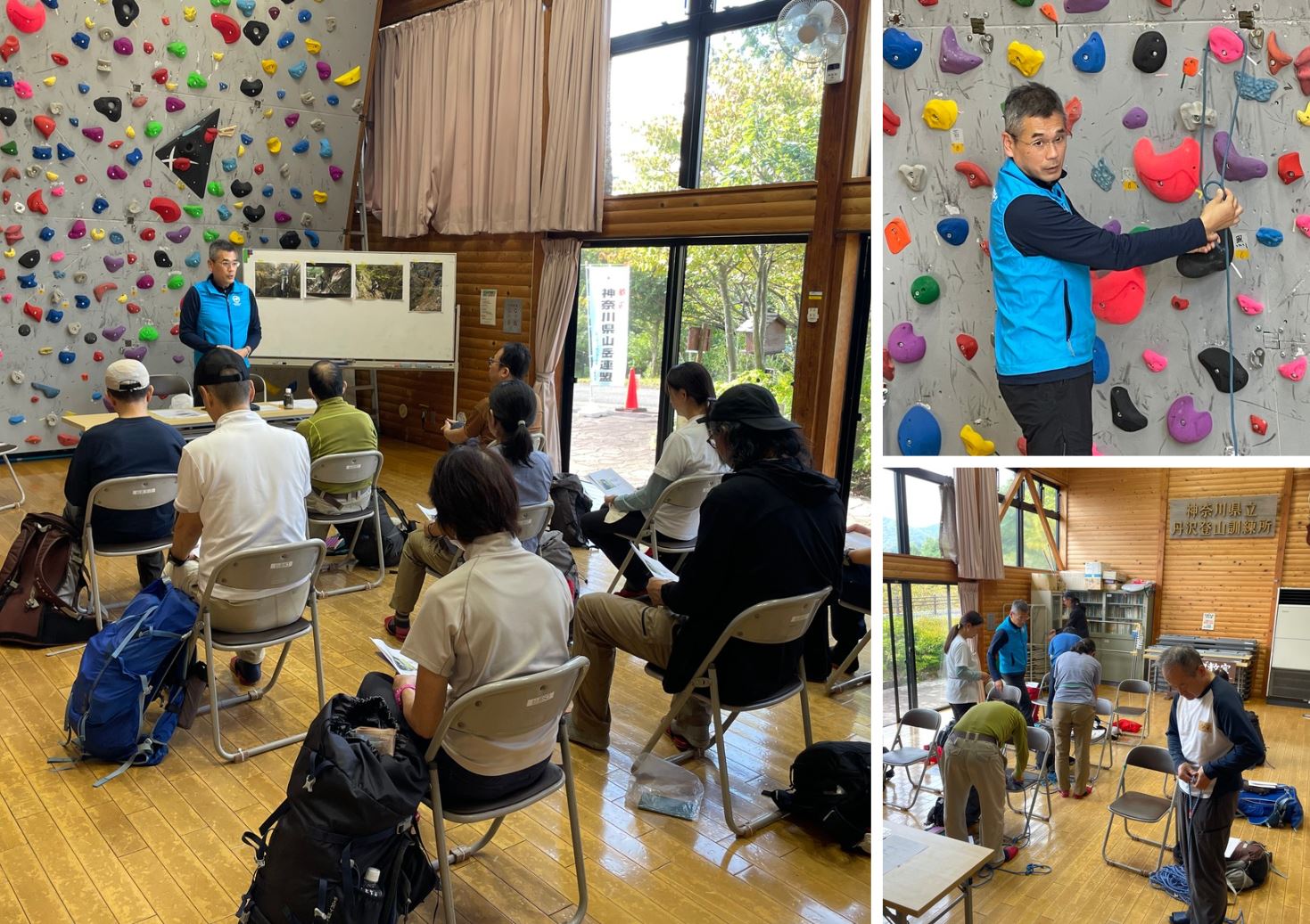 会場となるセンターの研修室は、中に人工壁もあり、座学とはいえ、実際に手や体を動かしながら、実践的に習得を進めることができるのがポイントです。