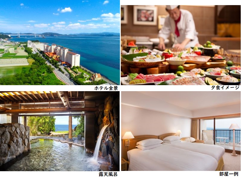 鳴門の海を一望する絶景リゾート「アオアヲナルトリゾート」は、バスツアーの宿泊先として大人気の温泉ホテル。全室オーシャンビューの客室からは、鳴門海峡や大鳴門橋を望む贅沢なひとときをお届けします。館内には多彩な温泉施設が揃い、旅の疲れを癒すには最適。夕食は鳴門の海の幸をふんだんに使った和洋の料理が楽しめ、季節ごとの味覚も魅力です。