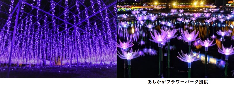 各出発地(熊谷15:00) - あしかがフラワーパーク「光の花の庭」(500万級のイルミネーション見物150分)-各出発地(熊谷20:30頃) |